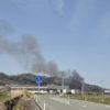 山形県南陽市梨郷 NDソフトウェア本社から宮内方面を見たら、赤湯バイパスの向こうで黒い黒煙が上がっています。