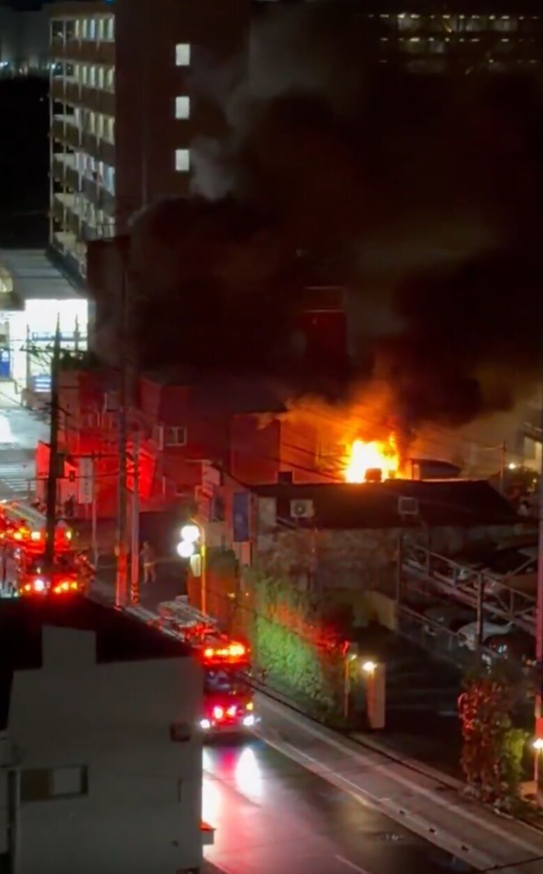 ラーメン店ラオシャン付近 建物から炎あがる火災