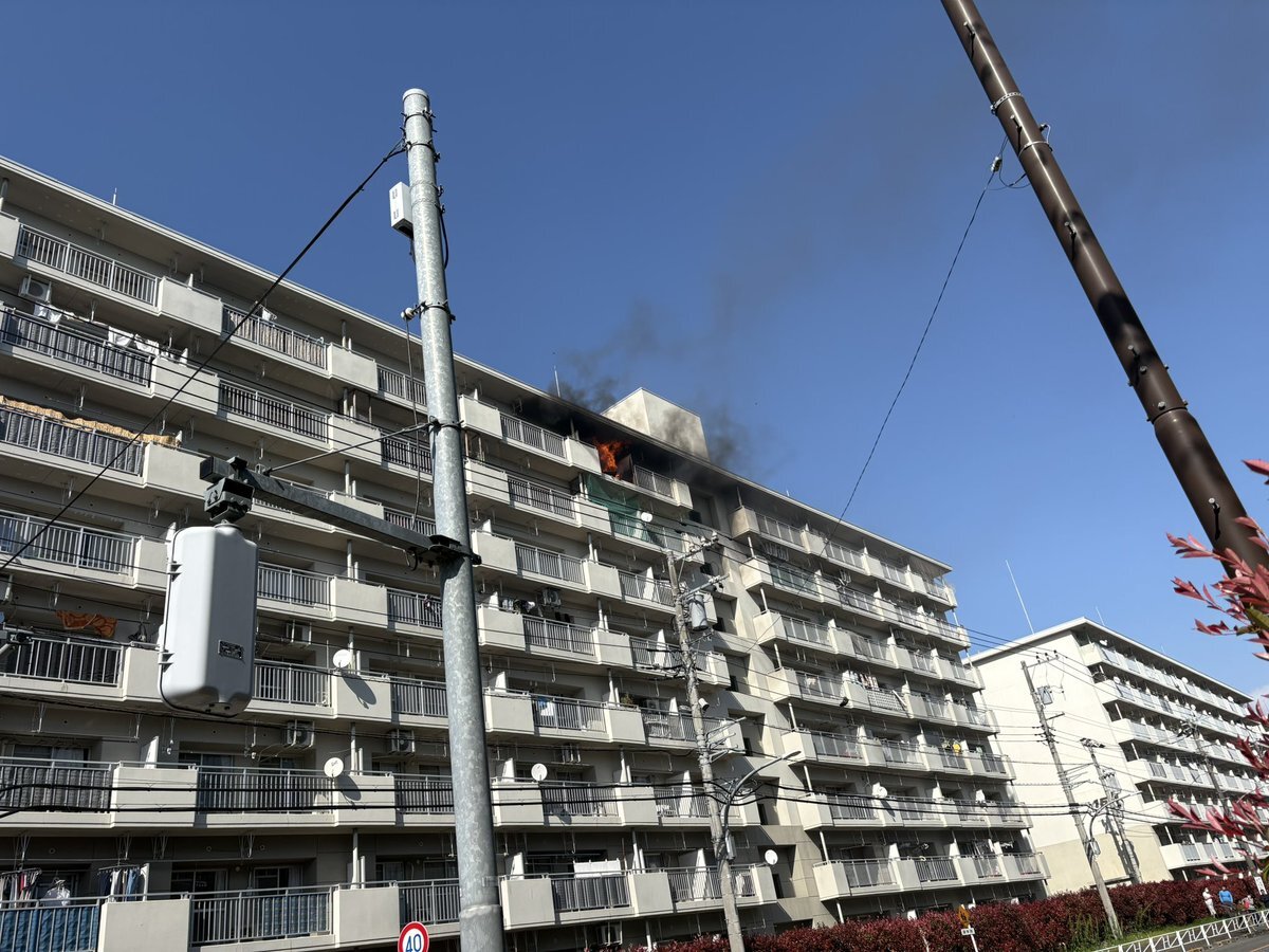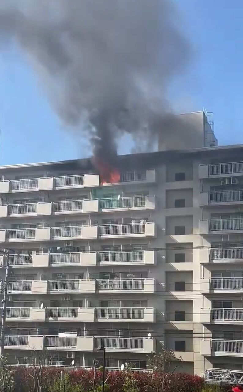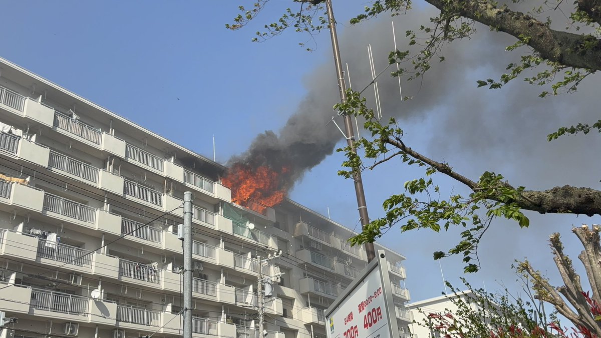 【火事情報】東京都八王子市中野山王3丁目付近 都営アパート建物から炎あがる火災 周辺では爆発音も4月16日 #八王子 #火災