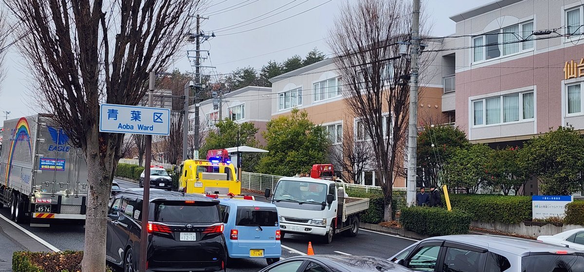 【現場の状況】#交通情報 県道37号 仙台北環状線 外回り 仙台市青葉区中山吉成入口付近 車線塞ぐ事故で通行止め渋滞12月24日 #宮城 #仙台 #クリスマスイブ