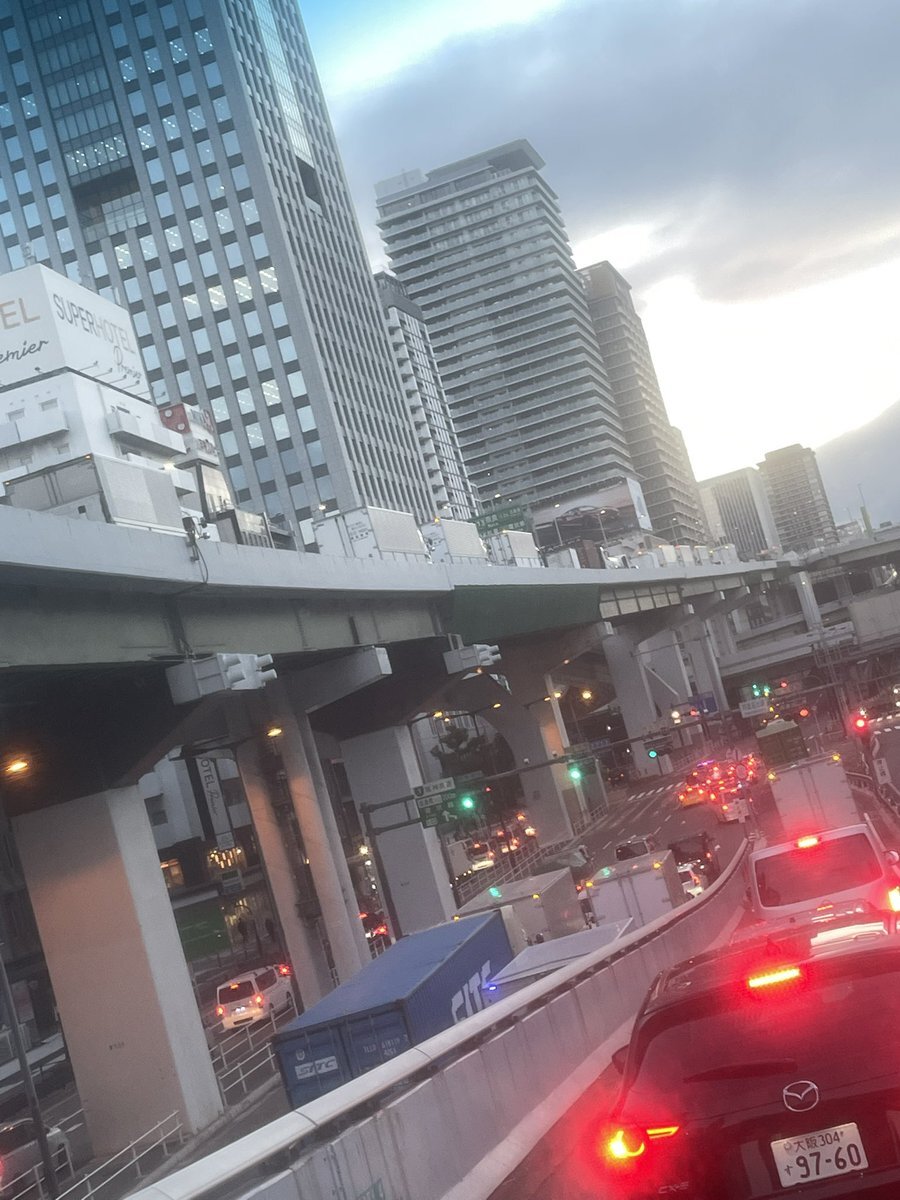 こんな朝から阪神高速の東船場で事故して通行止めにしてる阿呆は誰や