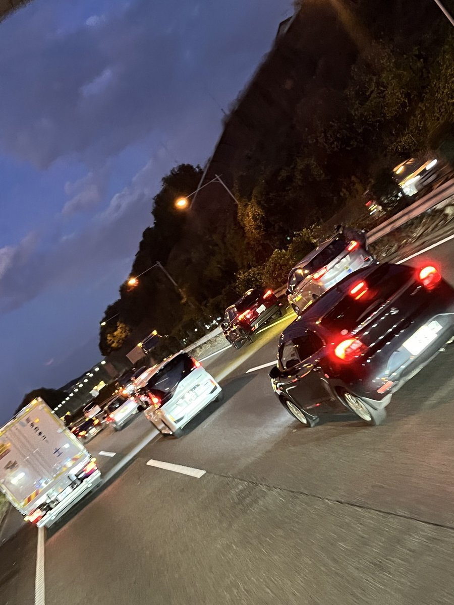 『追突事故の渋滞で、追突事故が多重で発生してる。ペーパードライバーさん達が動き始めたかな?