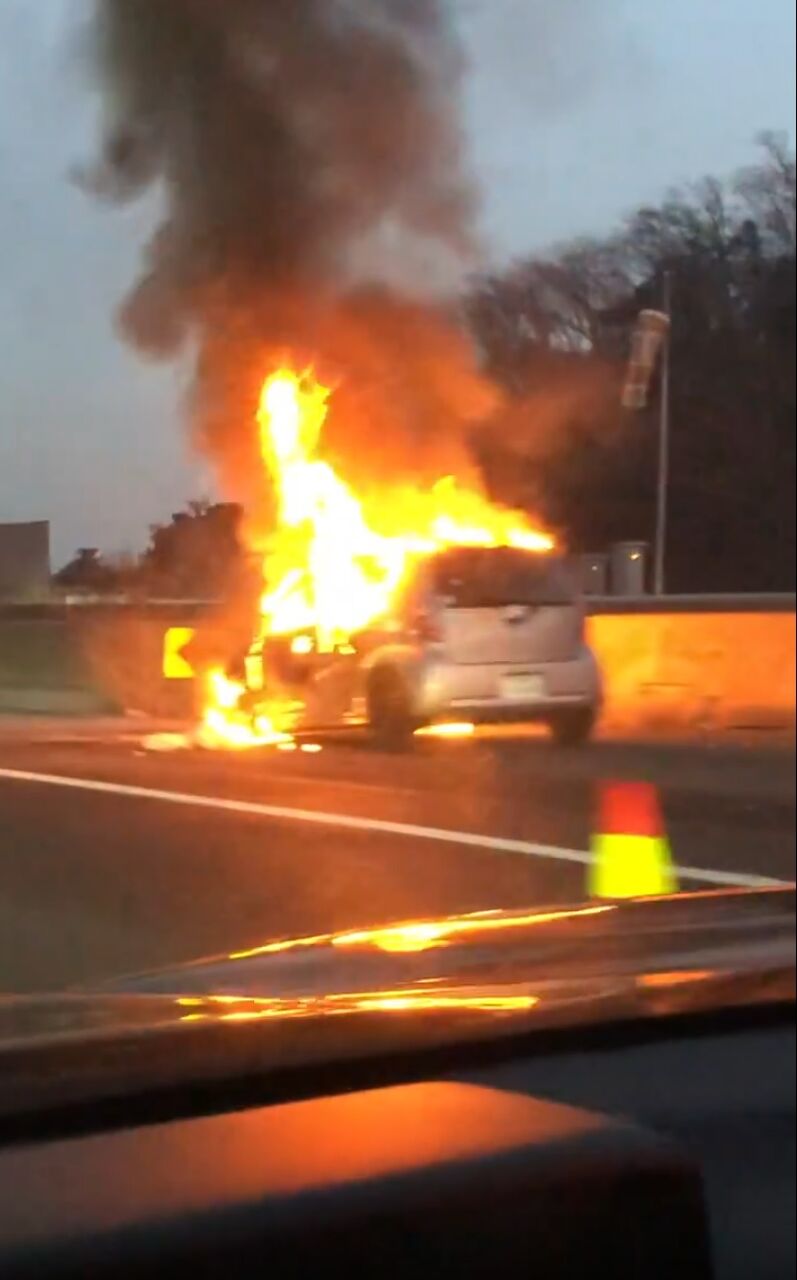 新名神、亀山付近で車燃えてました…