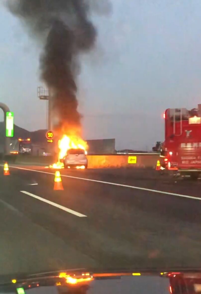 『新名神、亀山付近で車燃えてました…