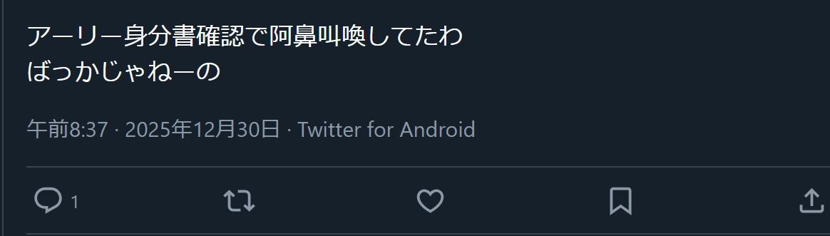 身分証なくて弾かれてるやつ多すぎて笑える— ダイヤぁ (@tkd417) December 29, 2025