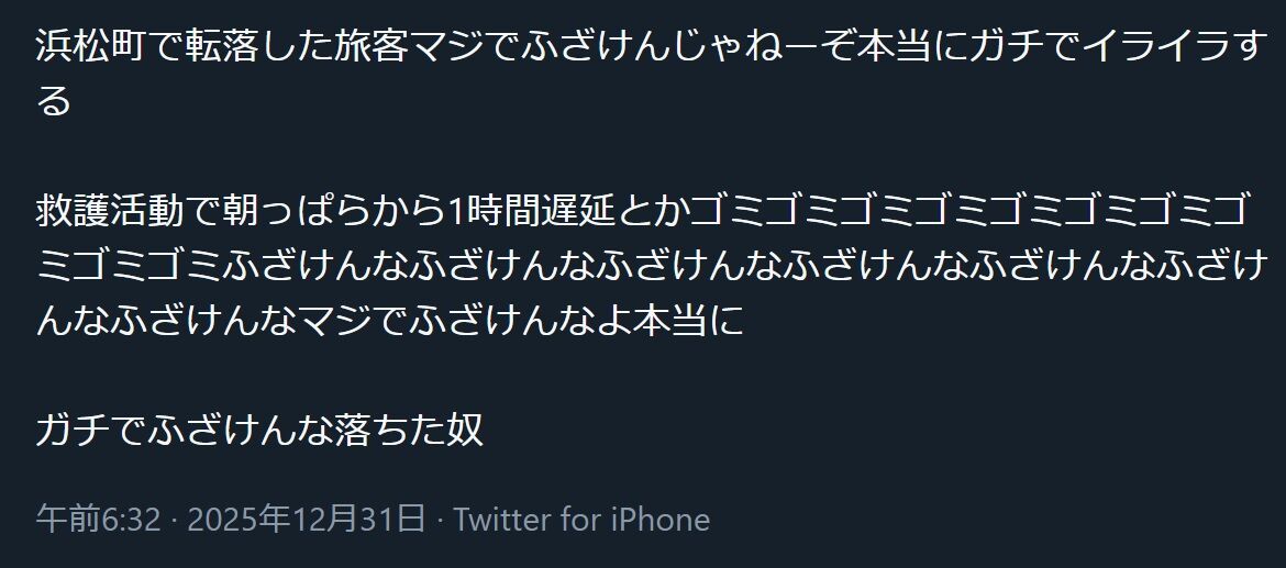 浜松町で転落した旅客マジでふざけんじゃねーぞ本当にガチでイライラする