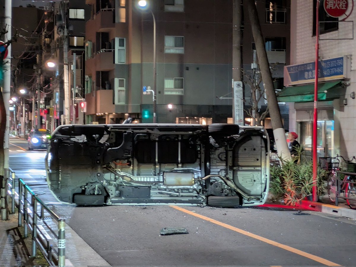【現場の状況】#交通情報 茶屋町通り 東京都台東区竜泉3丁目付近 車線塞ぐ横転事故で一時交通規制1月1日 #台東区 #三ノ輪 #竜泉 #元日 #お正月