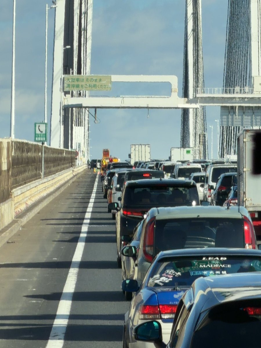 『横浜ベイブリッジのてっぺんで事故渋滞。