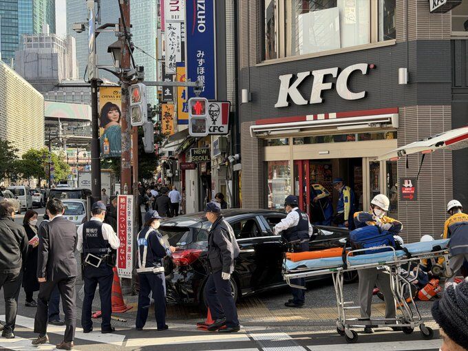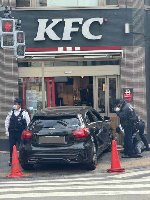 新橋駅前にて高齢男性の運転する車がケンタッキーに突っ込んだ模様(突っ込んではいない)