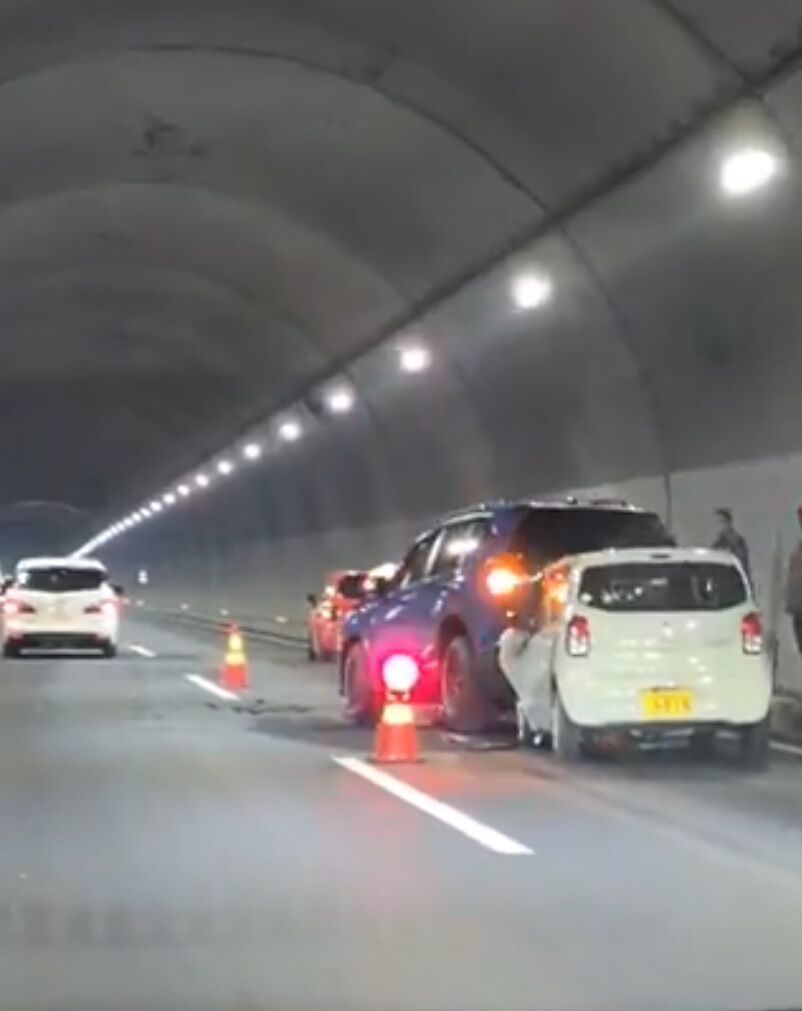 『亀山JCT手前トンネルで今さっき事故起きたみたい』