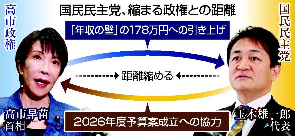 2026年度予算案などに国民民主の看板政策が相次いで取り入れられたためで、与党内には連立入りを求める声もある。ただ、選挙区調整などの課題を理由に国民民主内には与党入りに慎重意見が多く、玉木代表は状況を見定める構えだ。