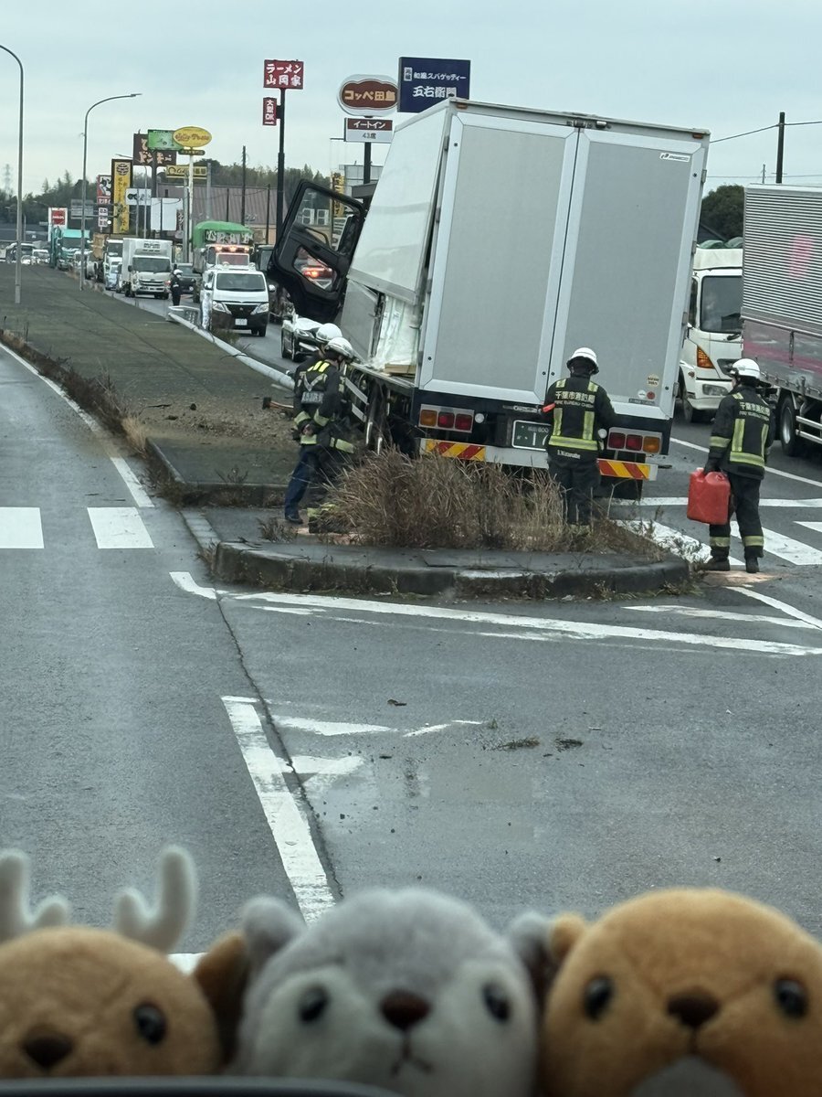 【現場の状況】#交通情報 国道51号線 上下線 千葉県千葉市若葉区若松町付近 大型トラック中央分離帯突っ込む事故で規制渋滞1月7日 #千葉 #若葉区