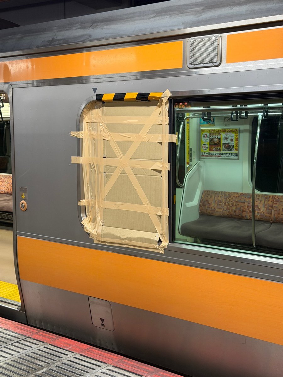 『中央線下り列車、国分寺駅付近で窓ガラス破損の情報😱』