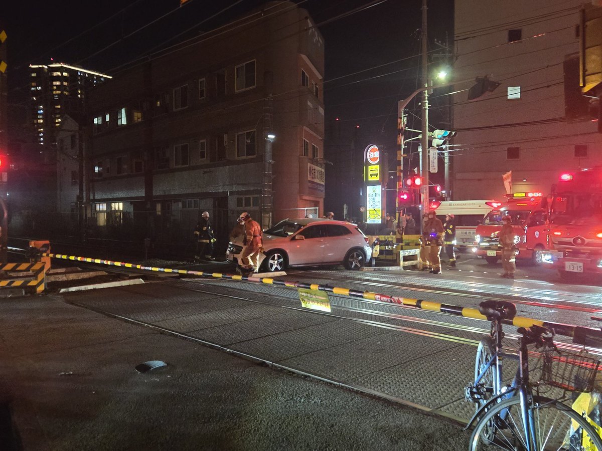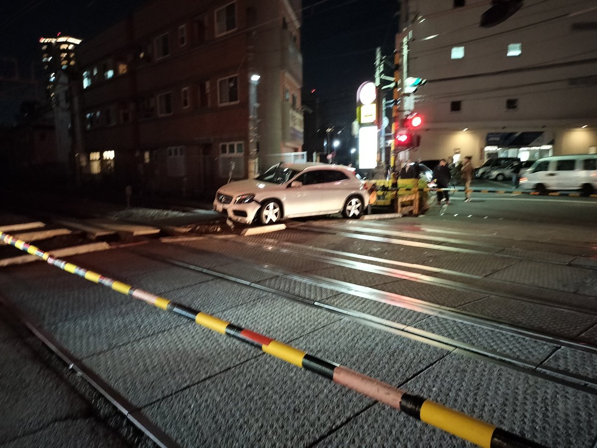 『踏切内、自動車立ち往生で電車止まったんだが』