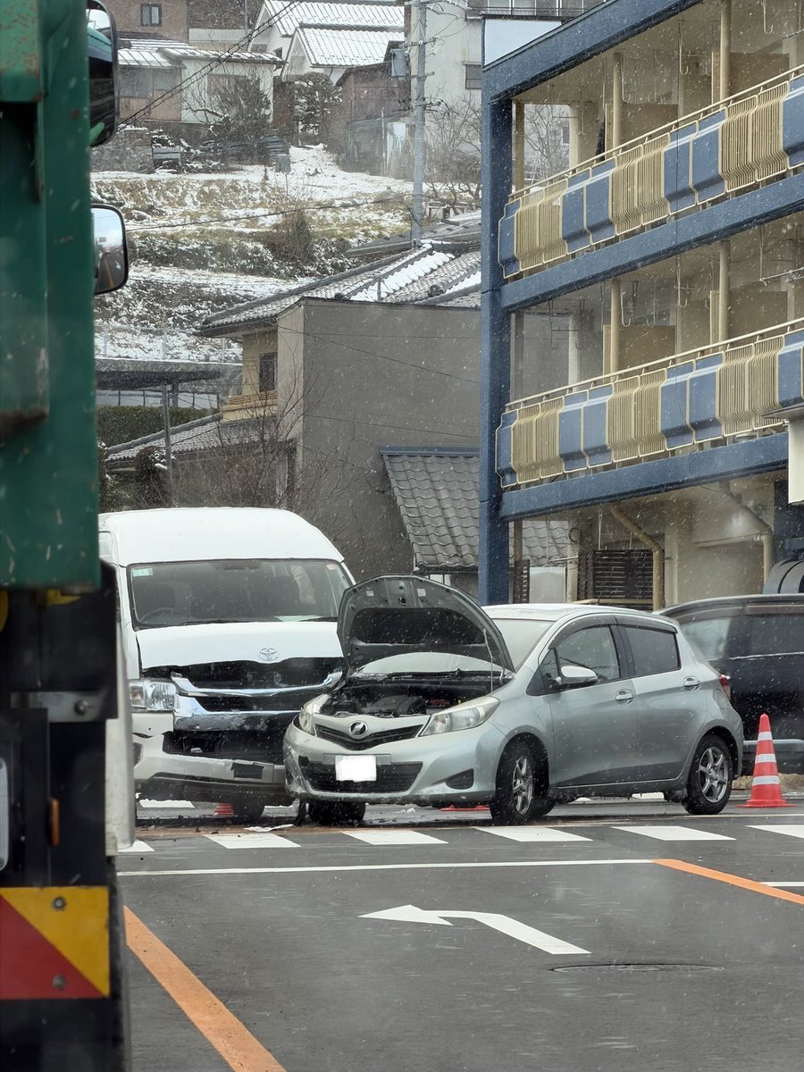 インバウンド観光客のレンタカーと地元車の右直事故。寒い中6人の外国人が立って途方にくれていたよ