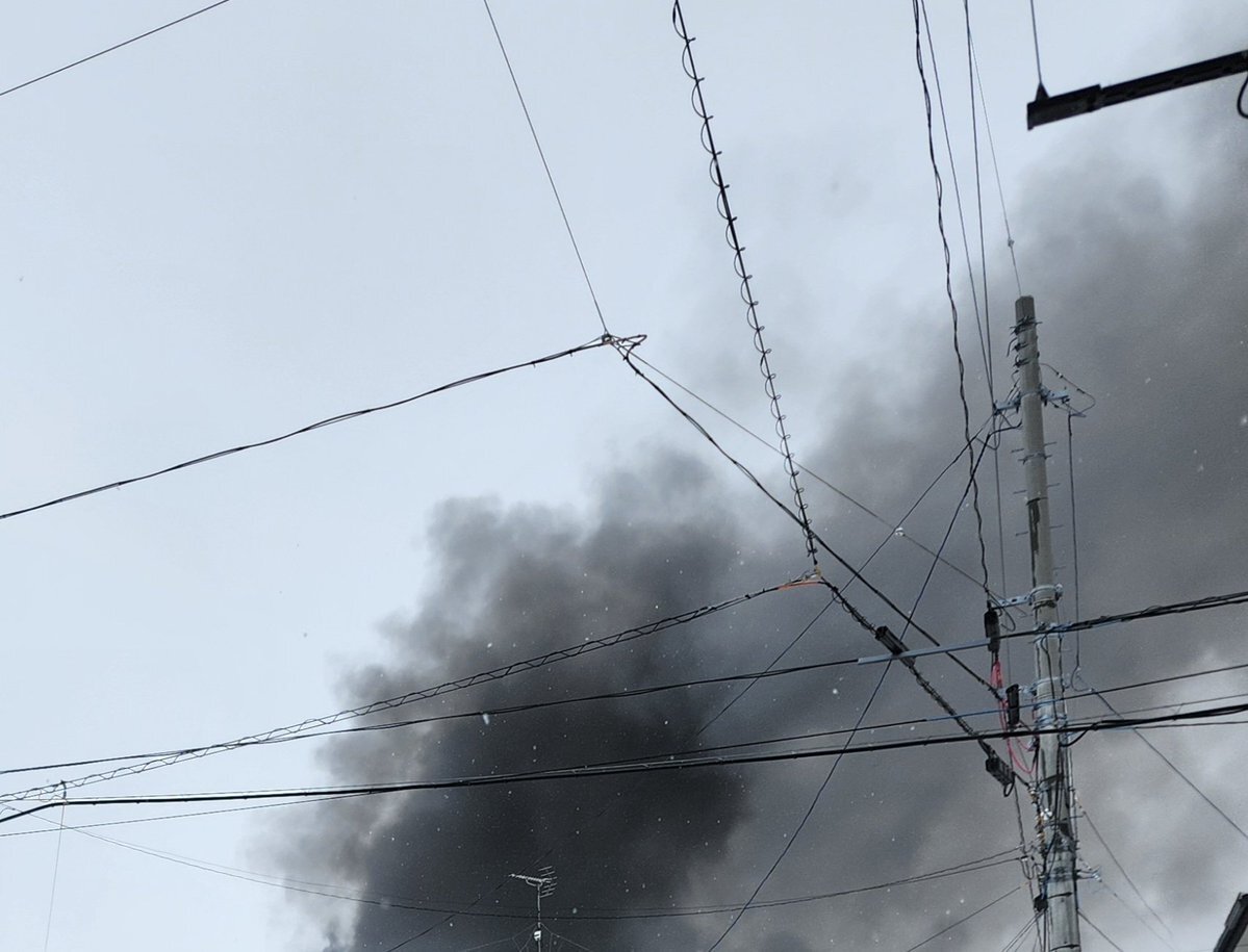 泉外旭川駅の近くで火事です。近くを通られる方は、渋滞に注意して😢どうか大きな被害無いように
