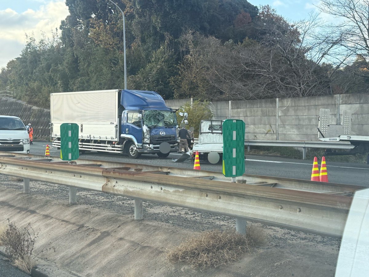 【現場の状況】#交通情報 九州道 上り 筑紫野インター付近 大型トラックと軽トラ衝突大破事故で規制渋滞12月12日 #九州道 #福岡 #筑紫野 #年末 #師走