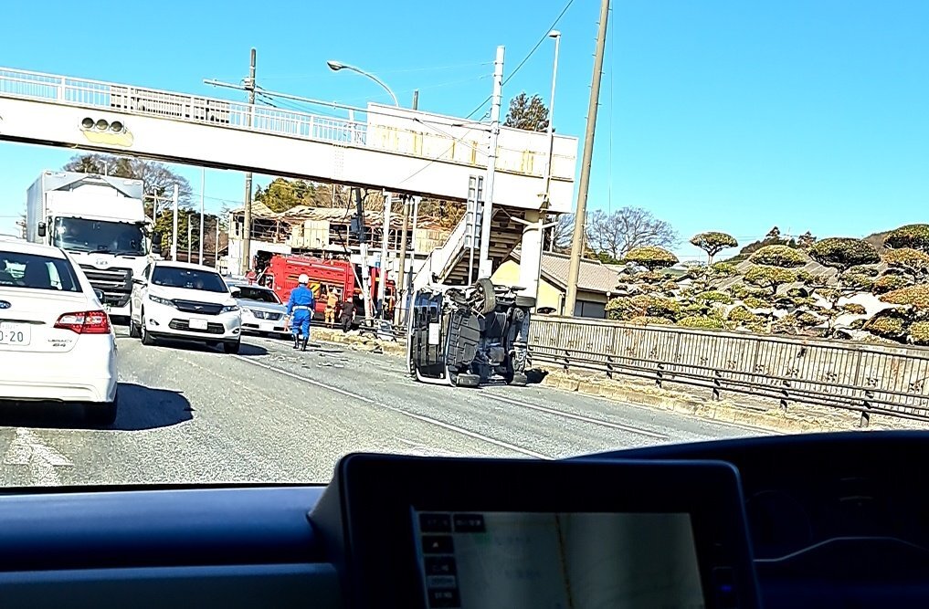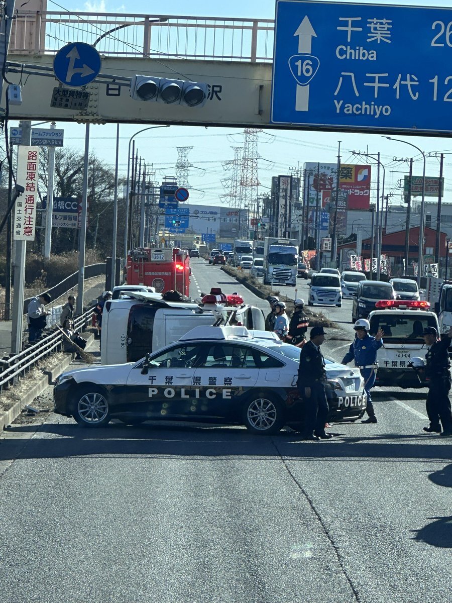 『国道16号の船橋で車が横転してた😱どんな運転をしたら横転するのか?