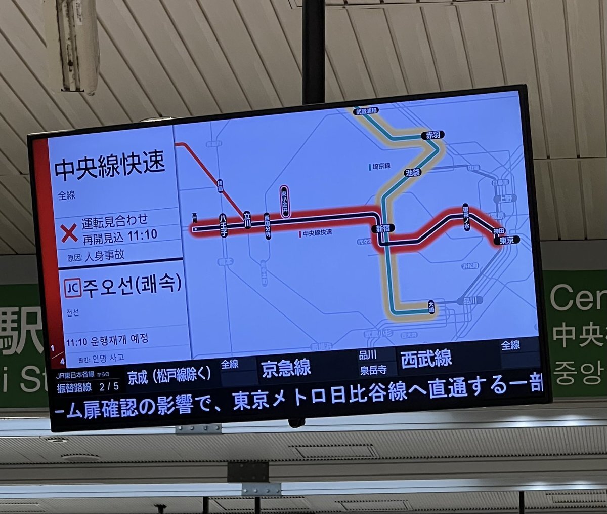 中央線快速電車は、西国分寺駅での人身事故の影響で、上下線で運転を見合わせています。運転再開は11時10分頃を見込んでいます。 #中央線快速電車 #Chuo_Line https://t.co/Bw82N3lIYZ— JR東日本【中央方面】運行情報 (公式) (@JRE_F_Chuo) January 14, 2026