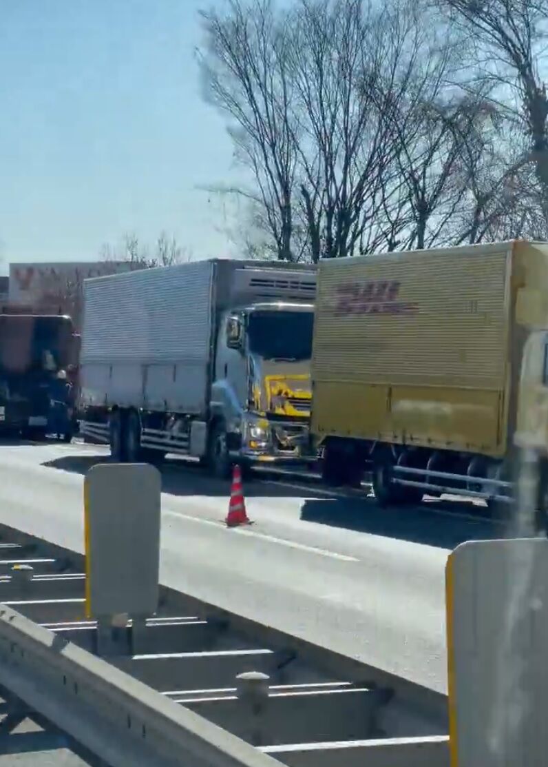 『圏央道外回り日高インターで大型四台による玉突きです』
