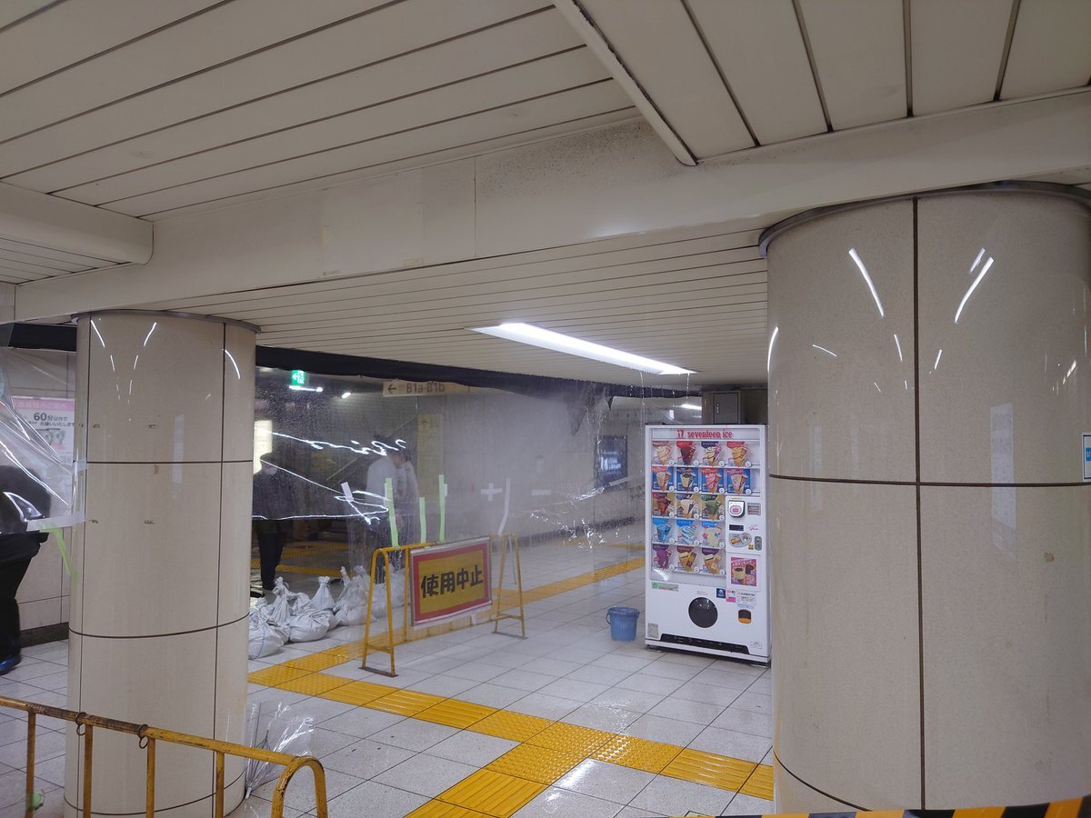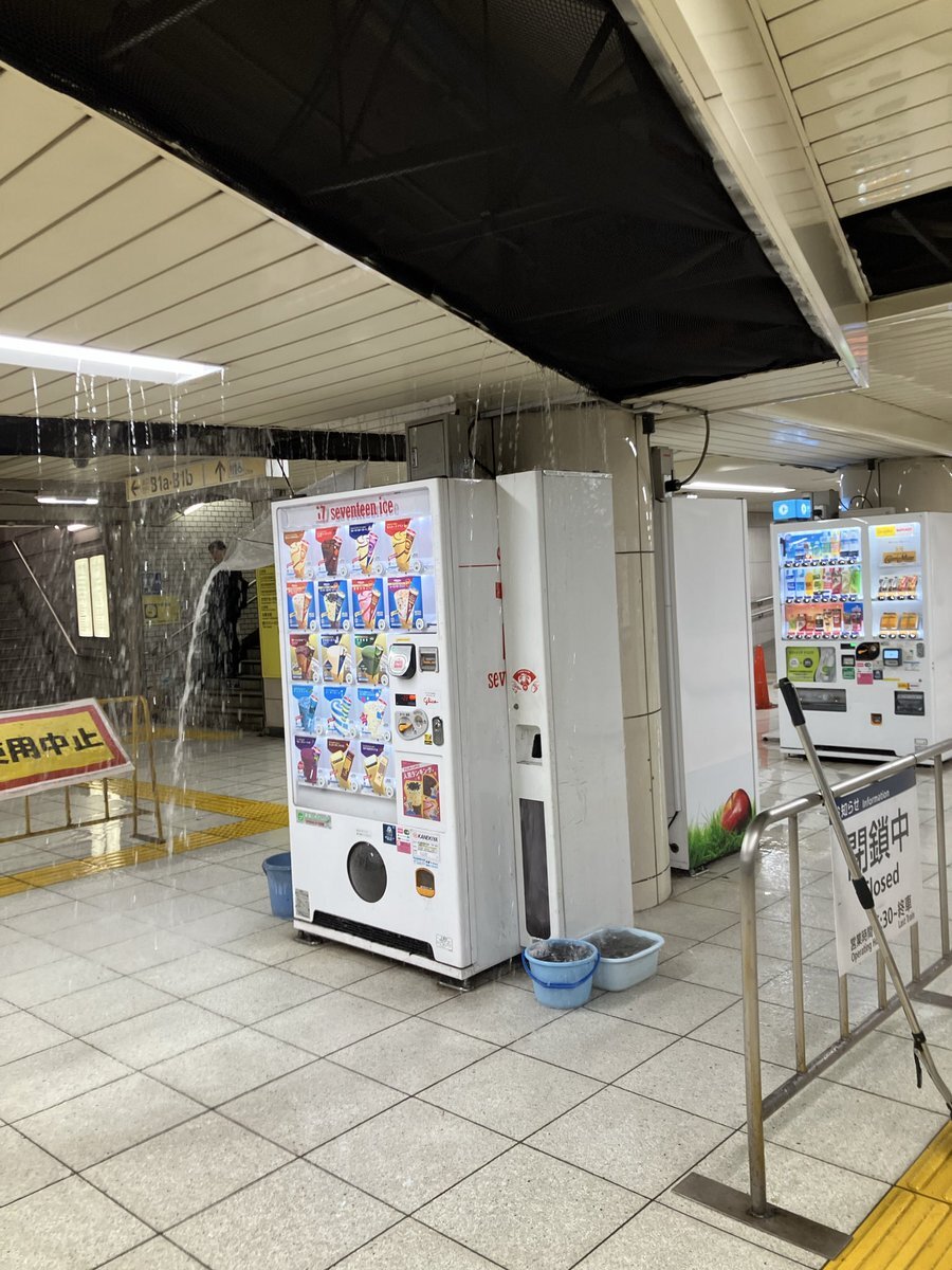 『霞ヶ関駅、水道管が死んだらしくアイスの自販機だけ土砂降り食らっててかわいそ』