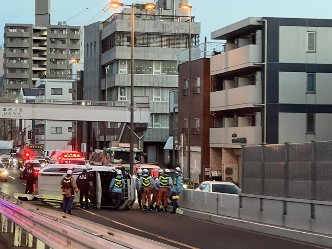 2026年1月15日 午前5時すぎごろ 東京都足立区千住新橋付近で事故が発生している目撃情報が寄せられた。