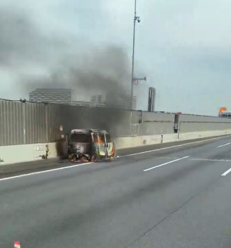 【現場の状況】#交通情報 東関東道 東行き 谷津船橋IC付近 軽バン燃える車両火災事故で規制渋滞1月15日 #東関道 #千葉 #火災