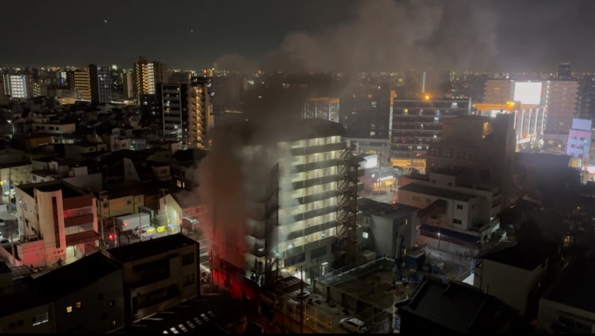 鶴橋近くで火事でめっちゃ消防車来てる pic.twitter.com/ZaynaY4GE5