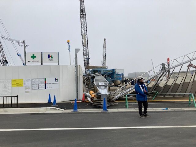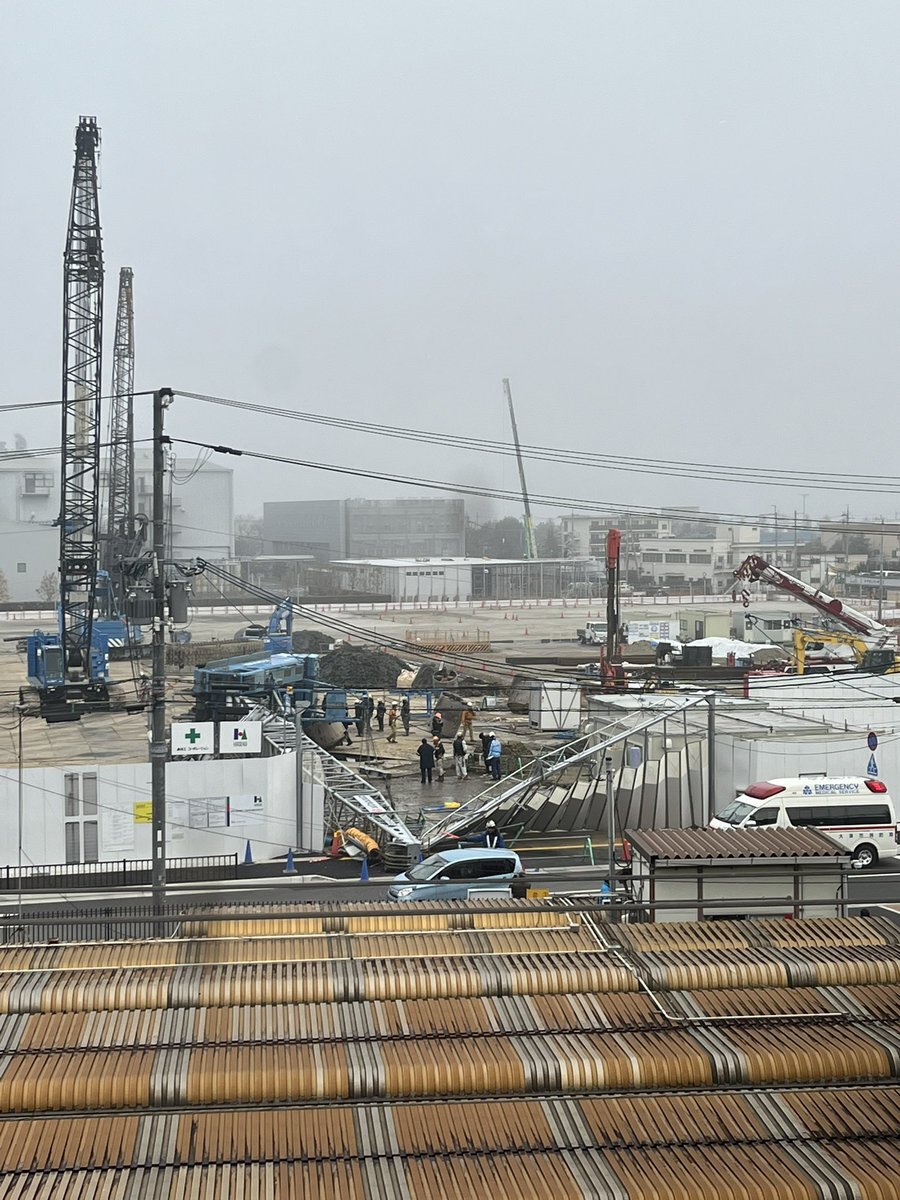 【現場の状況】#注意喚起 滋賀県大津市 JR石山駅前マンション建設現場で大型クレーンの転倒事故 歩道にまで倒れこむ 作業員が怪我1月17日 #滋賀 #大津 #石山