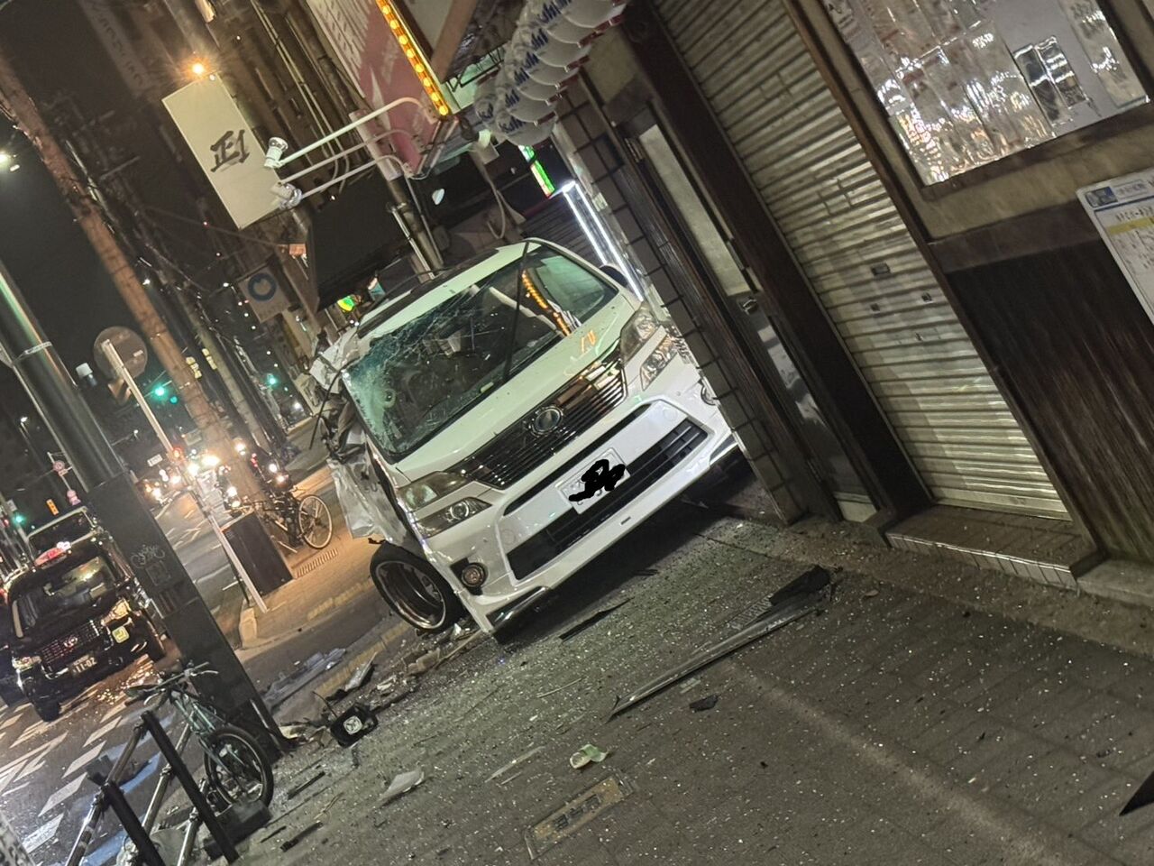 【現場の状況】#交通情報 国道1号線 京阪国道 西行き 大阪市都島区東野田町3丁目付近 破片散乱するワゴン車歩道乗り上げ衝突事故で交通規制1月20日 #大阪 #京橋
